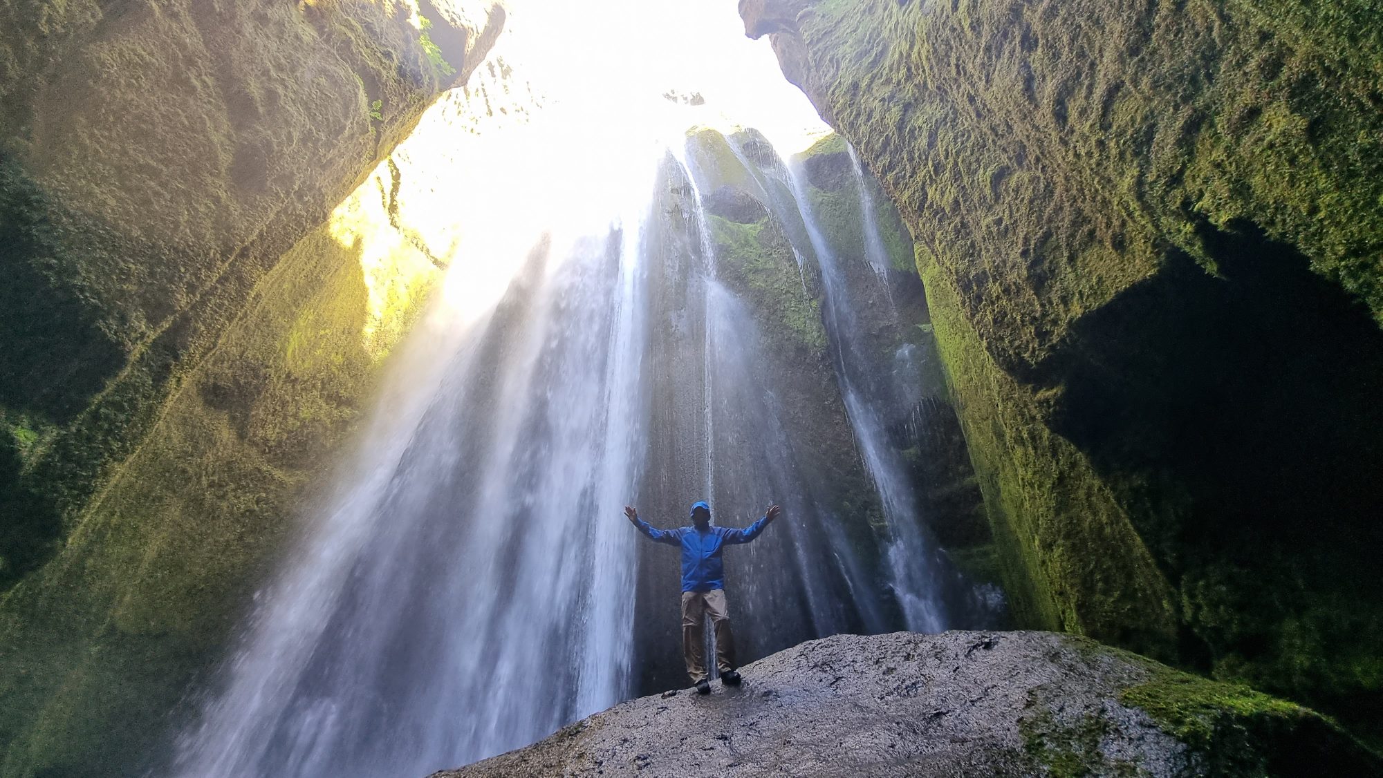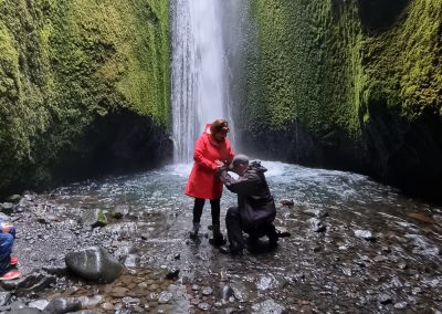 A hidden waterfall tucked inside a canyon like nature’s secret room. Step through the gap in the rocks and suddenly you’re standing in a waterfall chamber that feels unreal.