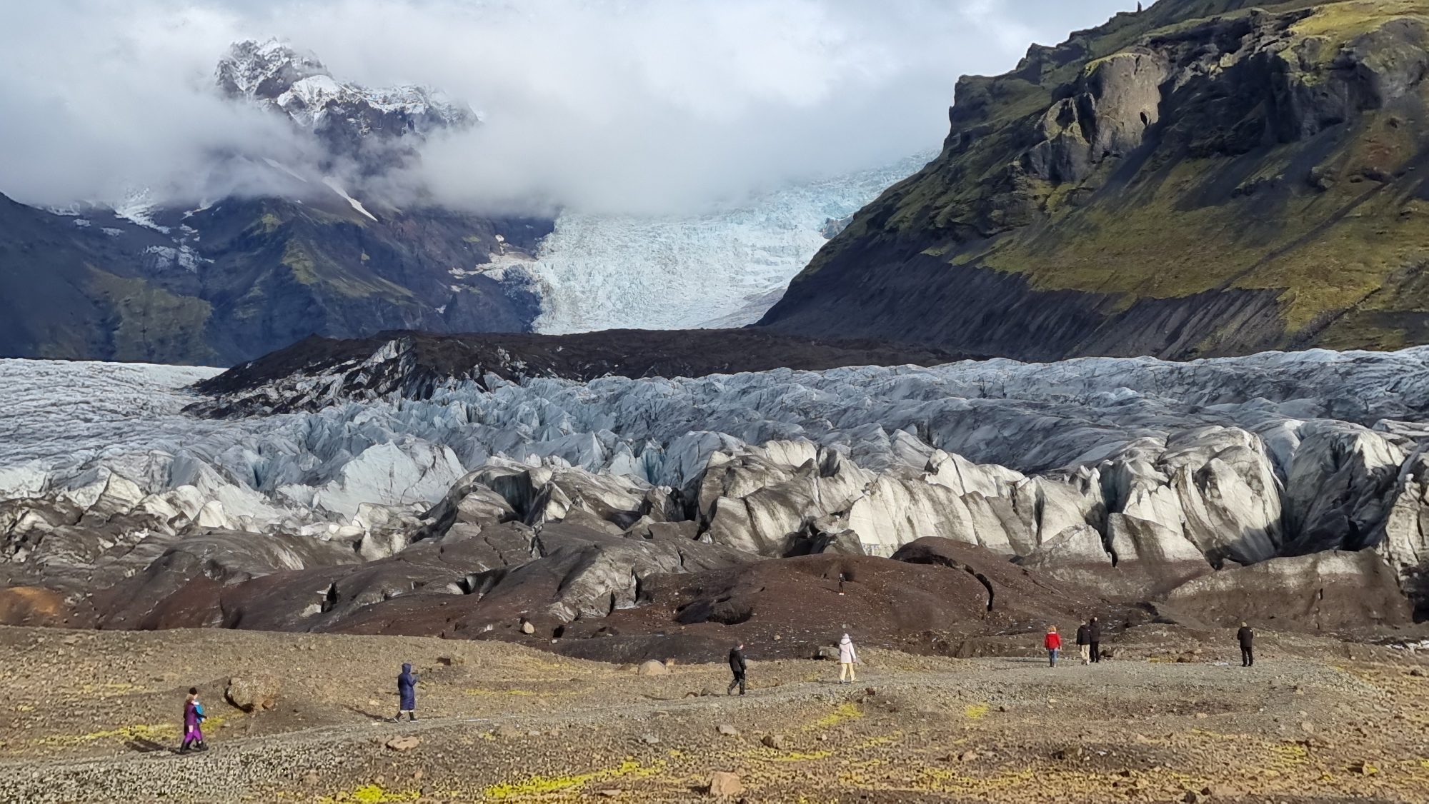 A seriously dramatic, heavily crevassed glacier tongue that looks wild even from a distance. It’s a powerful reminder that Iceland’s glaciers are beautiful — and not to be underestimated.