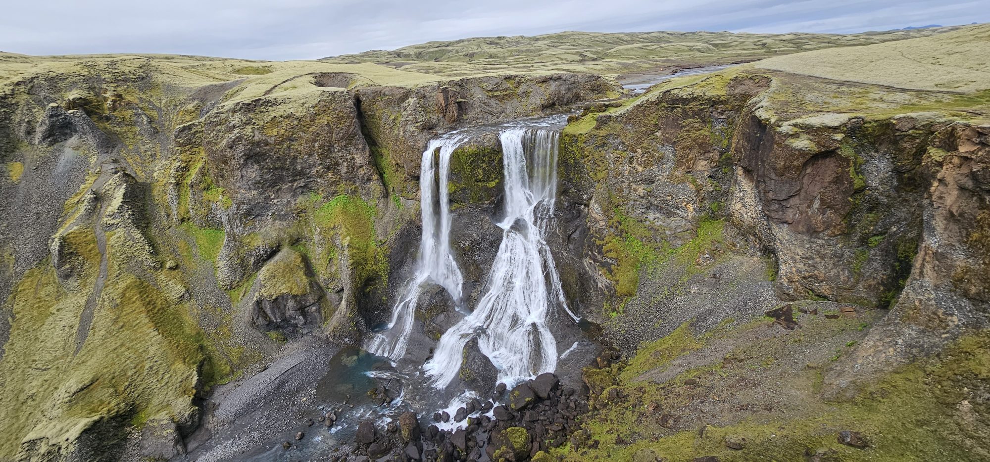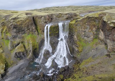 A stunning waterfall hidden within Eldgjá, reached by a short walk from the parking area. The canyon walls make the whole scene feel bigger, darker, and more epic.