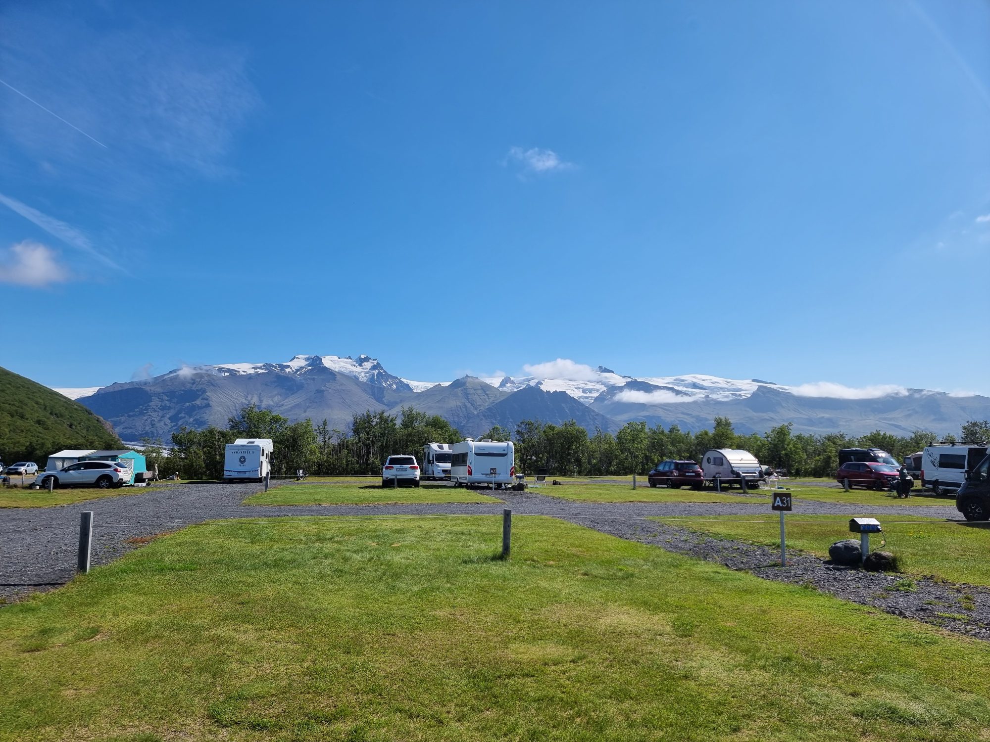 Hvolsvöllur is an excellent base for camper travelers thanks to its location directly on the Ring Road, with easy access to South Coast highlights and inland routes toward Þórsmörk and Landmannalaugar. The campsite sits just steps from shops, restaurants, fuel, and a swimming pool, making resupply and comfort effortless after a day on the road. Sheltered by trees and well equipped, it offers a quiet, practical overnight stop without sacrificing services or connectivity. This will be our base for 3 nights